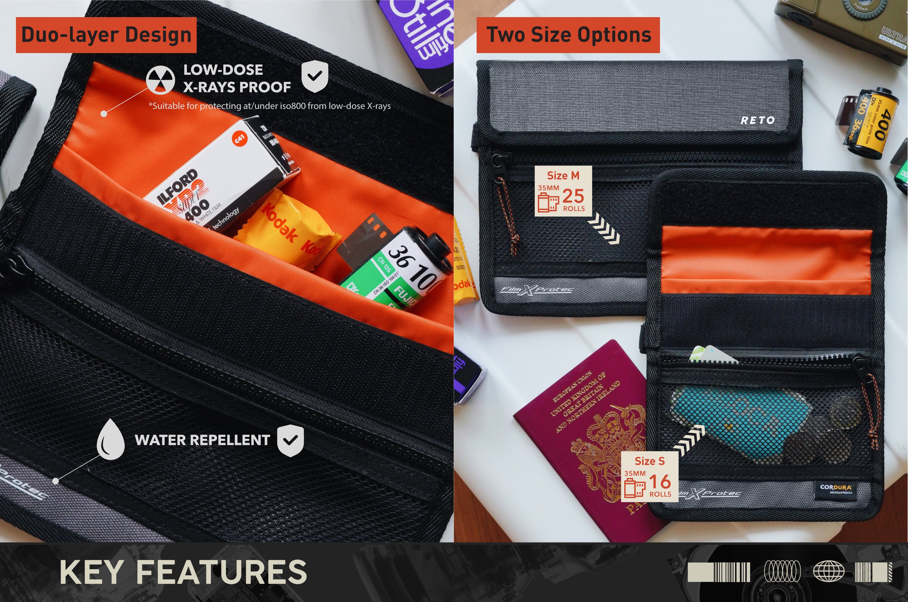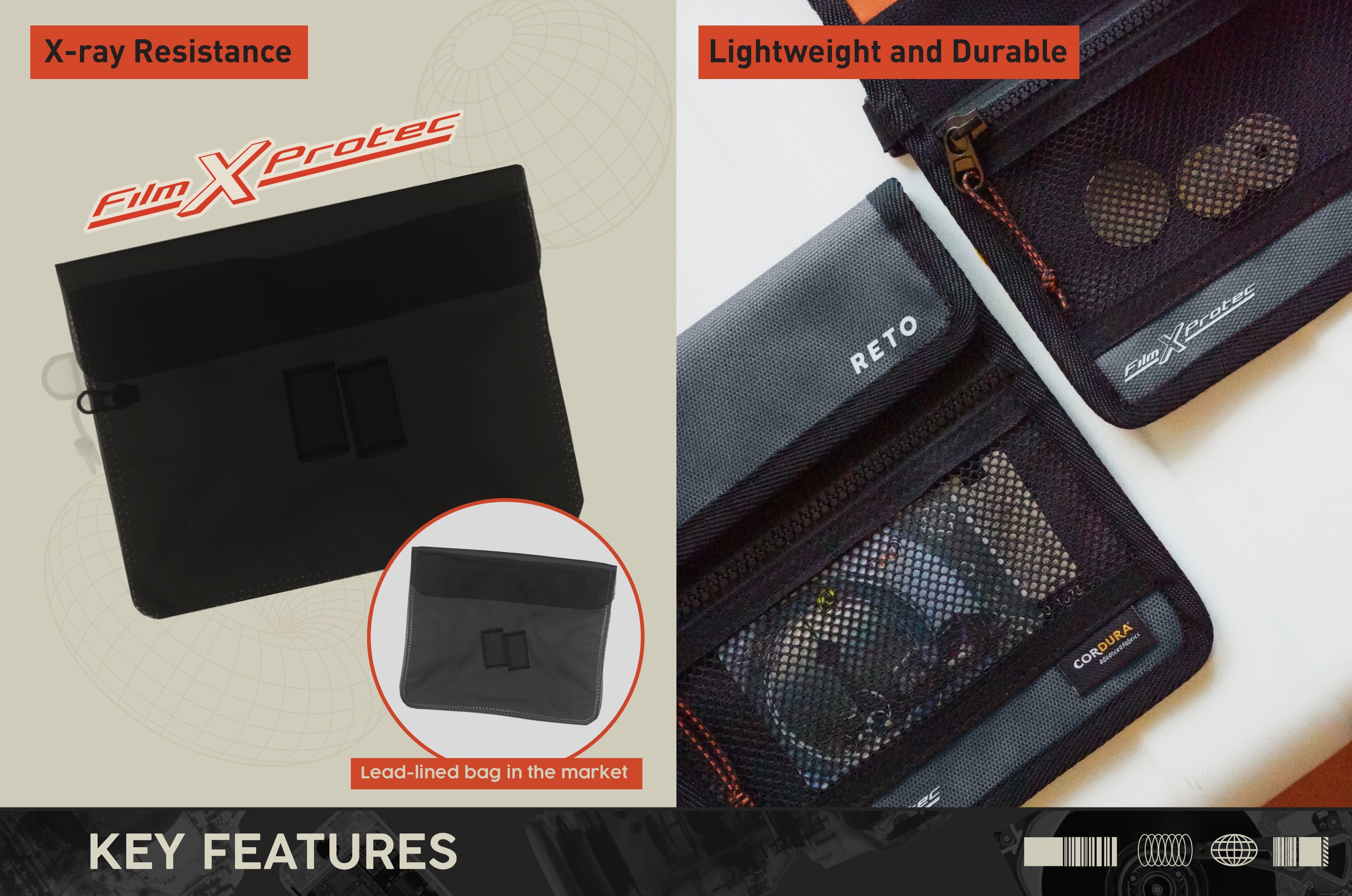 Worry about the precious film rolls exposed to X-rays and damaged going through security? Start your journey hassle-free with our RETO Film X-Protec Bag, a strong shield designed to safeguard your unprocessed film from X-rays.